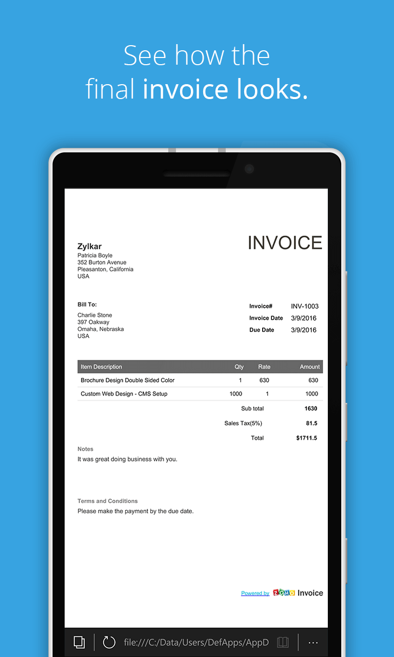 The app is very easy to use, just enter your client's email id. Send professional invoices from your phone or laptop. Zoho invoice is online invoicing software that helps you craft professional invoices, automatically send payment reminders, and get paid faster online. * the ios and android apps do not have the web access feature, instead install the desktop version. Discover new apps through getapp's newsletter. Have you tried any of. Streamline your billing process and support multiple tax compatible with windows and mac, express invoice is available for download today. Use online invoice software to grow your business. Sales invoicing templates itemize purchases and can calculate totals and special discounts automatically. All you need to do is download the app, fill in the invoice with necessary details and your invoice will be ready. Any web browser, the square invoices mobile app or the square point of sale mobile app. Zoho invoice (web, macos, windows, ios, android). This software is for creating invoices, reports and quotes in a quick and easy way.